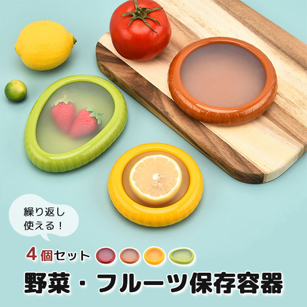 【即納】野菜フルーツ 保存容器 4個セット 密封保存 鮮度保持 スッキリ収納 シリコン製 繰り返し使える 便利 シンプル 可愛い ...