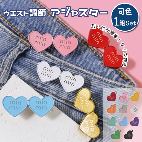 【即納】ウエスト調整 アジャスター ハート型 同色1組セット 取り付け簡単 便利 サイズ調節 アジャスター 丈夫 ポップ キュート...