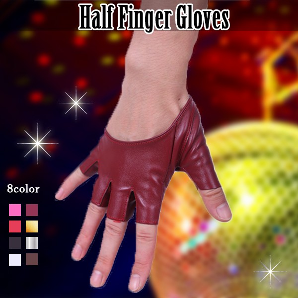 【即納】レディース 手袋 ハーフフィンガー グローブ フェイクレザー 指なし ポールダンス ドライビング 合皮レザー ダンス衣装 ...