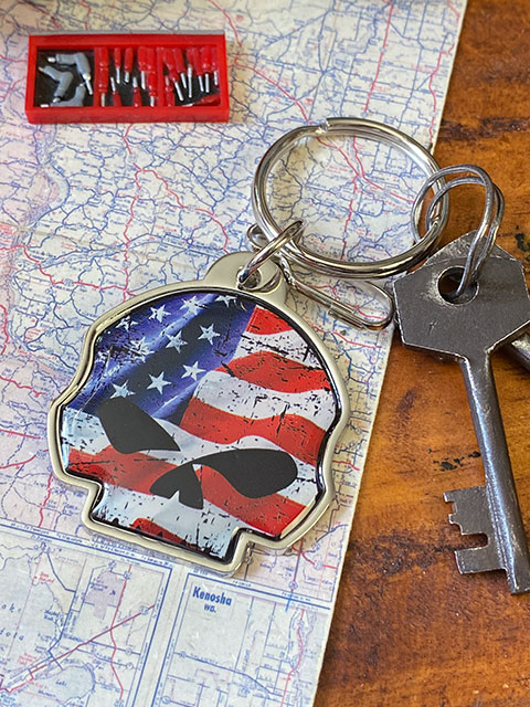 ハーレーダビッドソン オフィシャル メタルキーホルダー (ハーレースカル/星条旗)