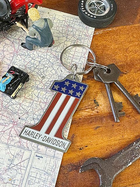 ハーレーダビッドソン オフィシャル メタルキーホルダー (ナンバーワンロゴ/星条旗)