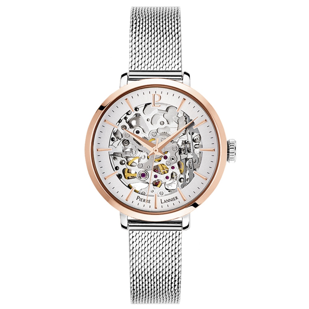 Automatic 自動巻き スケルトン レディース 腕時計 金属ベルト コンビ シルバー ゴールド