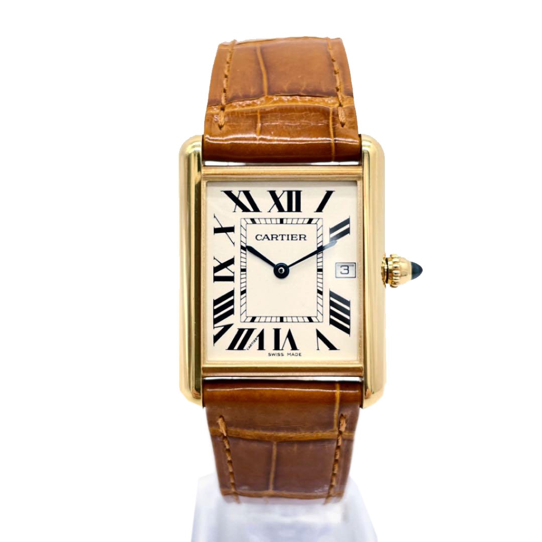 Cartier カルティエ メンズ ウォッチ 腕時計 タンクルイLM クオーツ 750 イエローゴールド アリゲーター W1529...