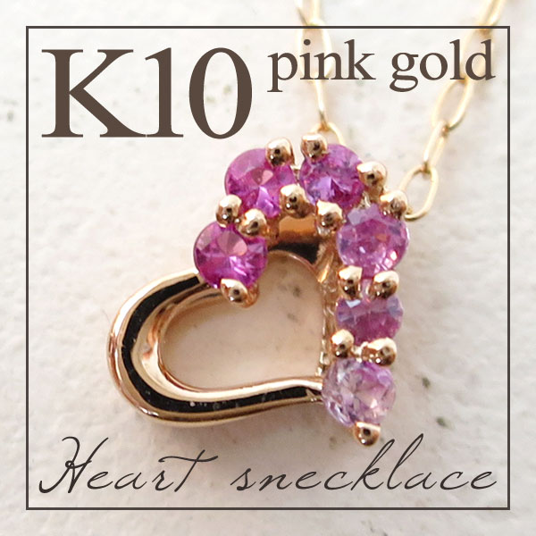【送料無料】《entiere》 K10 ピンク サファイア グラデーション ハート ネックレス【アリゼ】