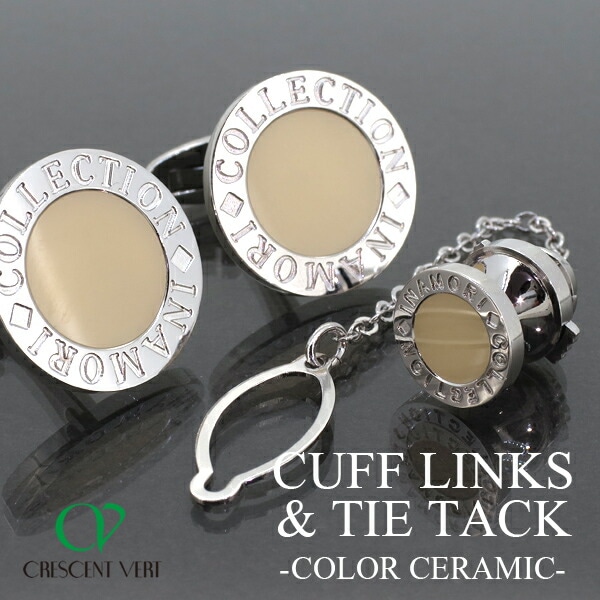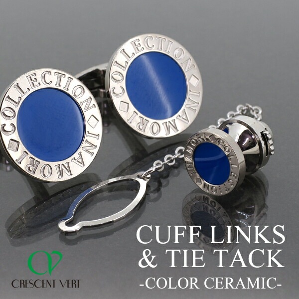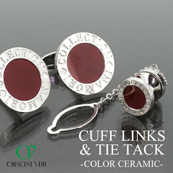【送料無料】 イナモリ セラミック シルバーカラー カフスボタン タイタック セット