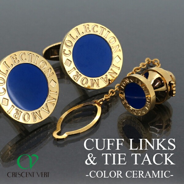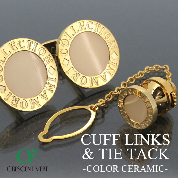 【送料無料】 イナモリ セラミック ゴールドカラー カフスボタン タイタック セット