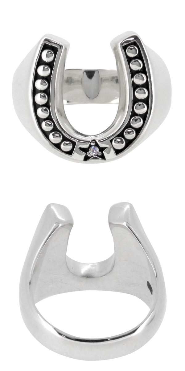 ☆送料無料☆ 馬蹄 スターデザイン ジルコニア シルバー リング(11~19号)