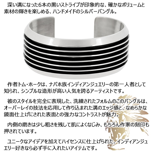 【送料無料】【インディアンジュエリー】ナバホ族・ディープブラック ストライプ シルバーバングル