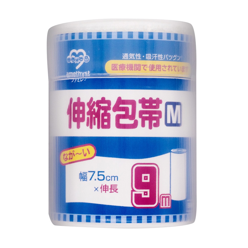 伸縮包帯Mサイズ 幅7.5cm×9m(伸長時) | 日本製 介護 傷 湿布 捻挫 ねんざ 大衛 アメジスト 病院
