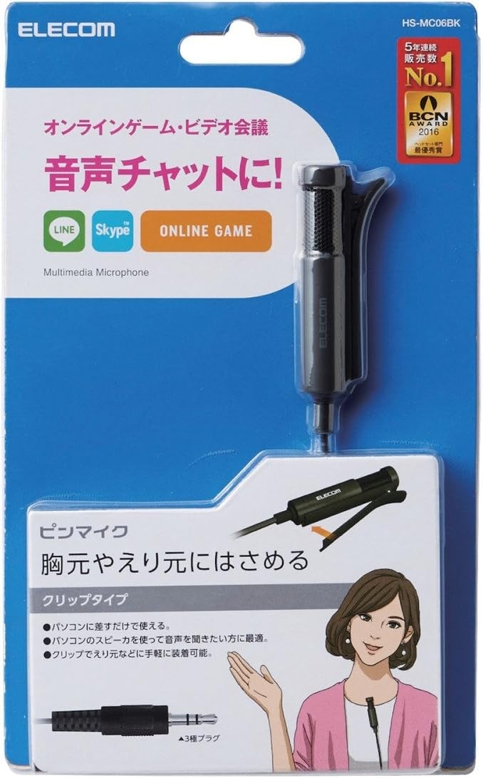 未使用品 エレコム マイクロフォン クリップマイク 1.6m ブラック HS-MC06BK【送料無料】【メール便でお送りします】代...
