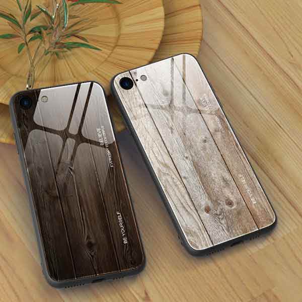 iPhone7/8/SE2/X/XS ウッド調 TPU+強化ガラス ケース