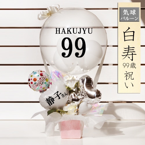 送料無料オリジナルバルーンギフト ロングライフ 99歳白寿祝い クリアホワイトバルーン気球