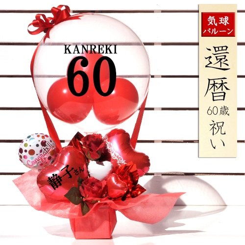 送料無料オリジナルバルーンギフト ロングライフ60歳還暦祝い クリアレッドバルーン気球
