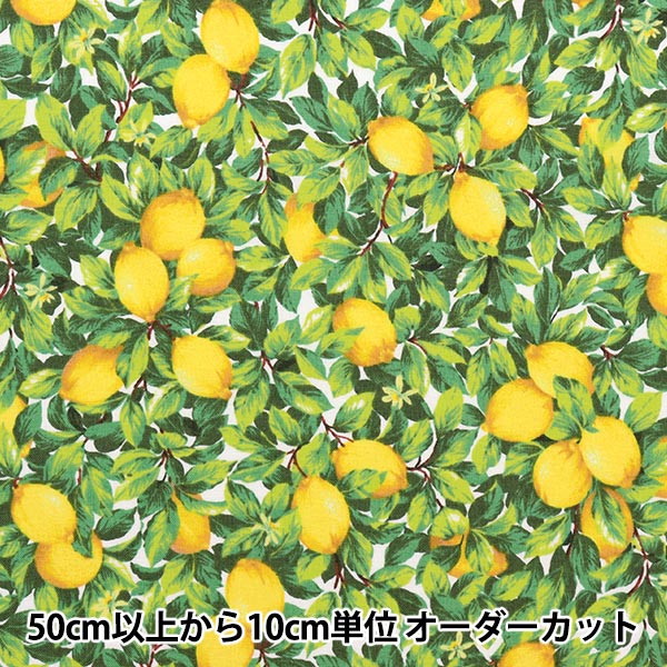 【数量5から】 生地 『シャーティング レモン柄 白 826687-A』 YUWA 有輪商店