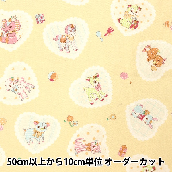 【数量5から】 生地 『松山敦子コレクション シャーティング ハートアニマル柄 AT812896-C』 YUWA 有輪商店