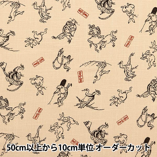 【数量5から】 生地 『モーリークロス 鳥獣戯画 キナリ AP25805-1A』 コスモテキスタイル