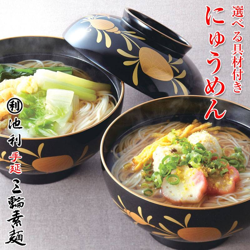 池利にゅうめん 三輪そうめん 冷凍食品 (具材付 冷凍麺) 彩り和風、野菜かき揚げ各2食(麺 スープ 具材付)送料無料※北海道、沖...