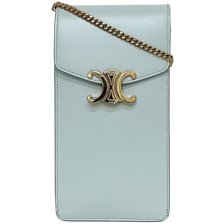 セリーヌ チェーン ショルダーバッグ バーティカル モバイル ポーチ ライトブルー トリオンフ 10J133DPV.07SZ 美品...