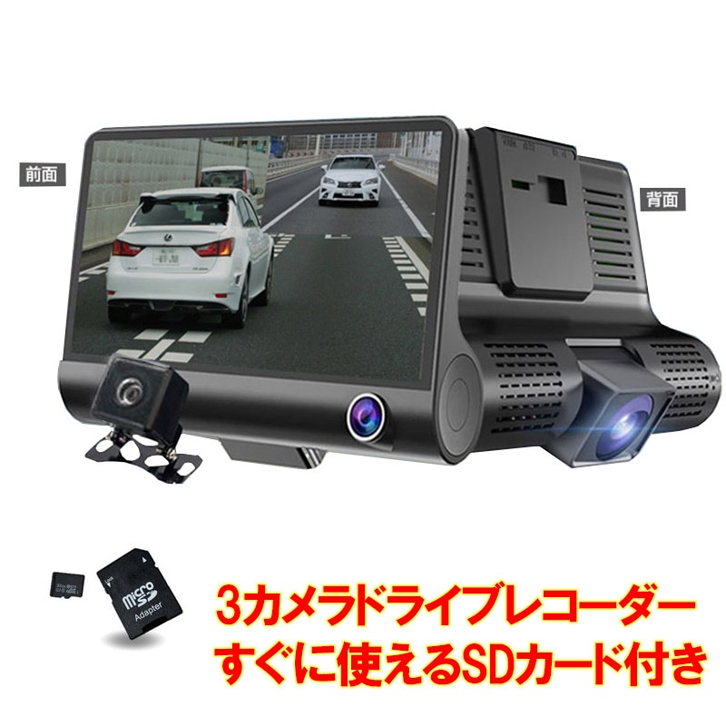 《まとめ買いがお得》3カメラドライブレコーダー SDカード付(32GB) car-055-sd32 4台以上 [63147]