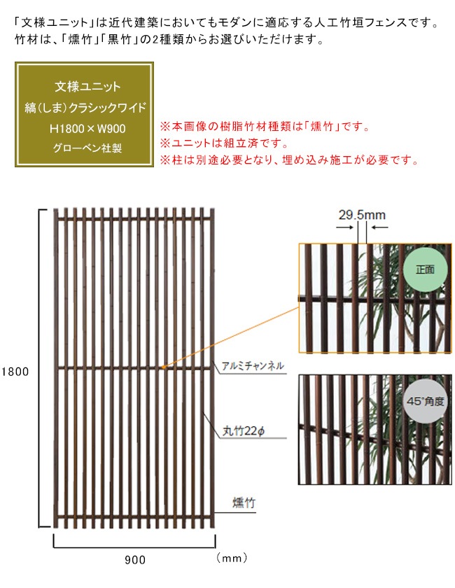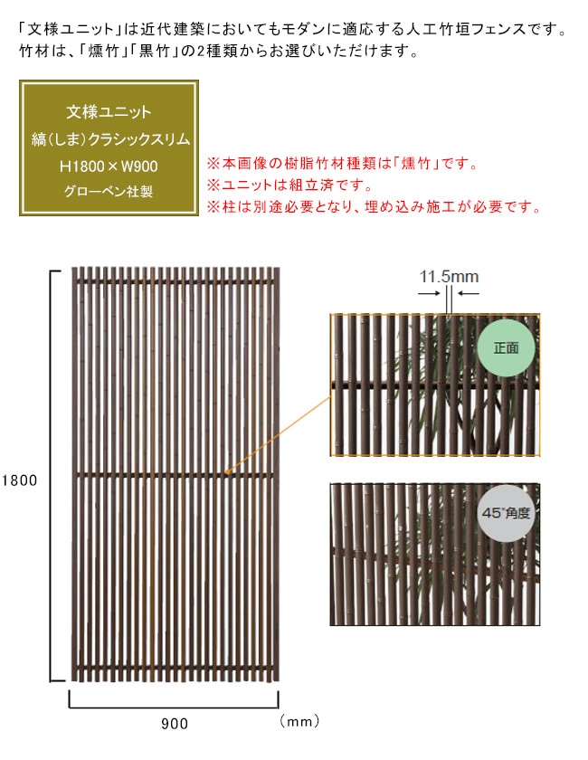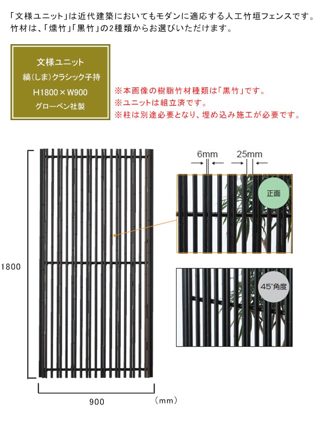 文様ユニット 縞(しま)クラシックH1800用 専用柱、端柱:左用、カラー:ダークブロンズ、サイズ:60×60×H2500mm、入...