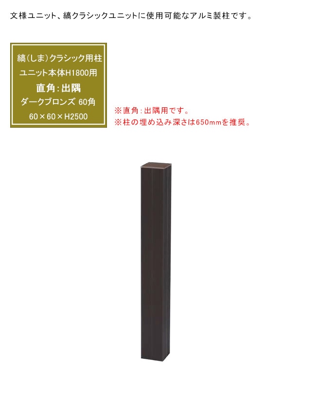 文様ユニット 縞(しま)クラシックH1800用 専用柱、直角:入隅用、カラー:ダークブロンズ、サイズ:60×60×H2500mm、...