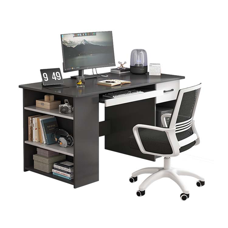 福居家具 法人様向け オフィスデスク PCデスク パソコンデスク 学習机 デスク オープン収納 引き出し キーボードトレイ 配線孔...
