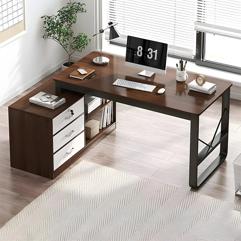 福居家具 法人様向け オフィスデスク ワークデスク 学習机 事務用デスク パソコンデスク サイドキャビネット 錠付き 引き出し 配...