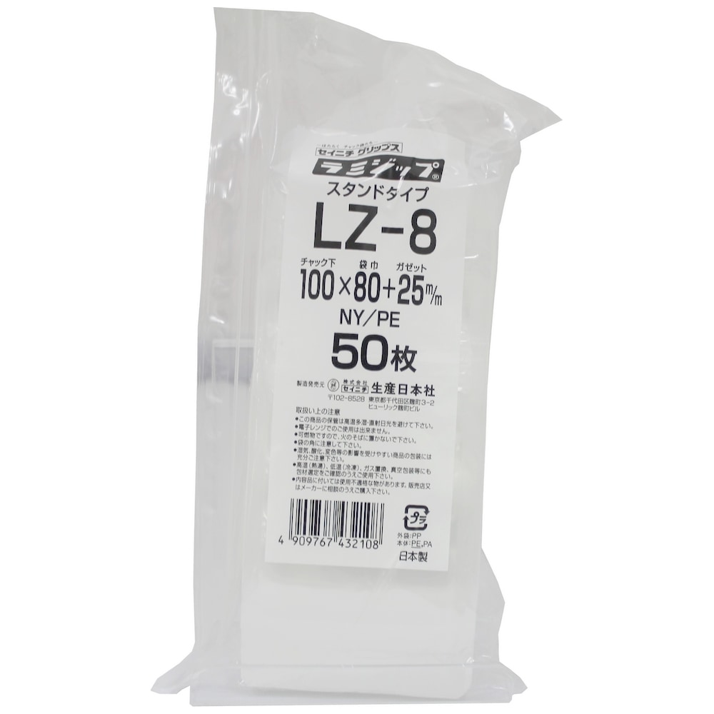 ラミジップ スタンドタイプ LZ-8 100×80+25mm 50枚【専用倉庫直送】
