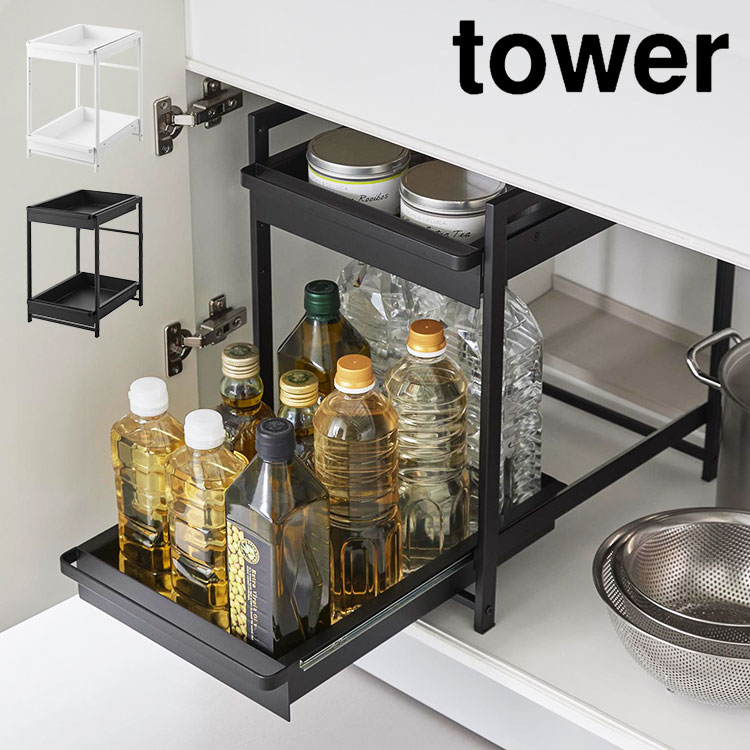 キッチンラック シンク下 引き出し tower 山崎実業 タワー スライドラック 2段 スライド ラック シンク下収納 収納棚 調...