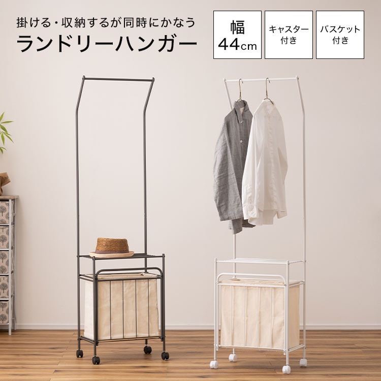 ハンガーラック キャスター スリム ランドリーラック バスケット付き 棚付き ダークグレー ホワイト 白 ランドリーハンガー ラッ...