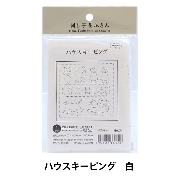 刺しゅう布 『刺し子 花ふきん 布パック ハウスキーピング 白 31』 Olympus オリムパス