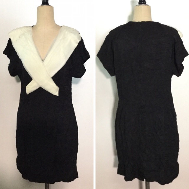 VIRGOⅡアメリカ古着 ワンピース フォーマルドレス レディース S-M/ブラックxオフホワイト シフォン モード オールドアメ...