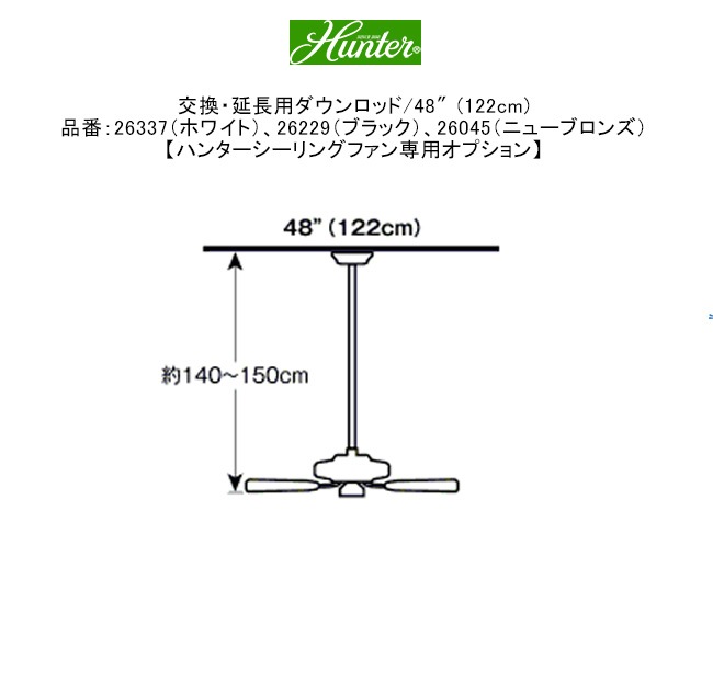 交換・延長用ダウンロッド/48″(122cm)品番:26337(ホワイト)、26229(ブラック)、26045(ニューブロンズ)【...
