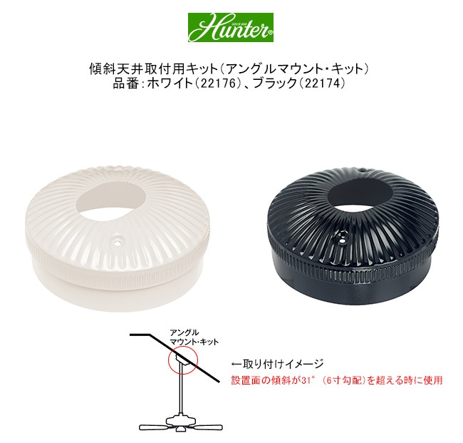 傾斜天井取付用キット(アングルマウント・キット)品番:ホワイト(22176)、ブラック(22174)【ハンターシーリングファン専用...