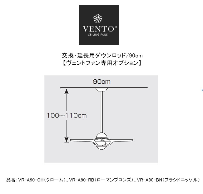交換・延長用ダウンロッド/90cm/品番:VR-A90-CH(クローム)、VR-A90-RB(ローマンブロンズ)、VR-A90-B...
