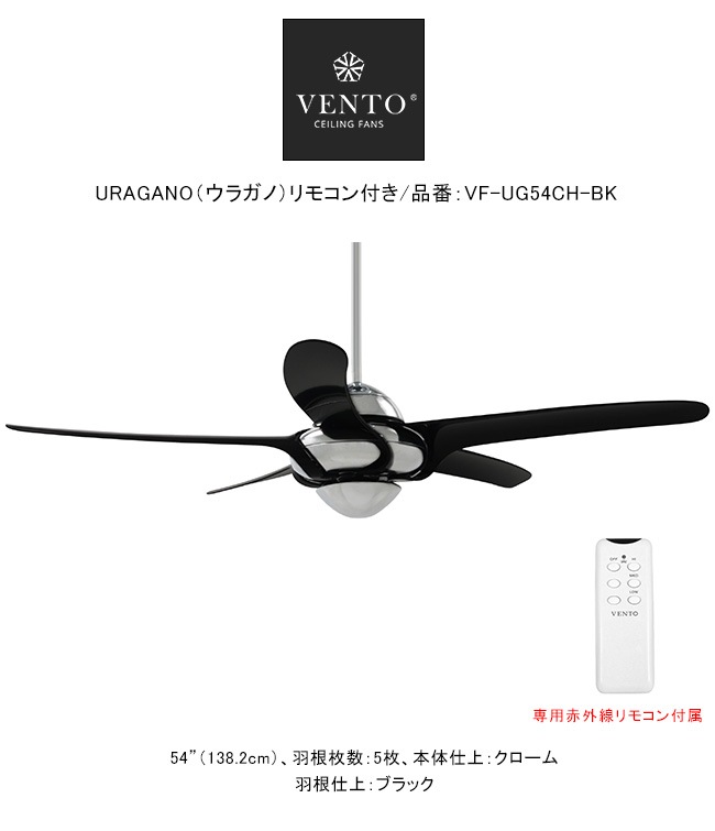 URAGANO(ウラガノ)リモコン付き/品番:VF-UG54CH-BK/仕上:クローム/ブラック【ヴェントファン VENTO】