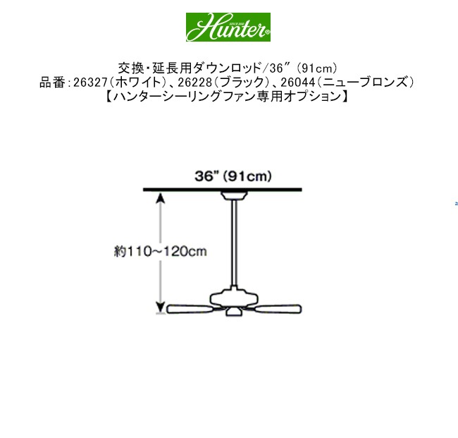 交換・延長用ダウンロッド/36″(91cm)品番:26327(ホワイト)、26228(ブラック)、26044(ニューブロンズ)【ハ...