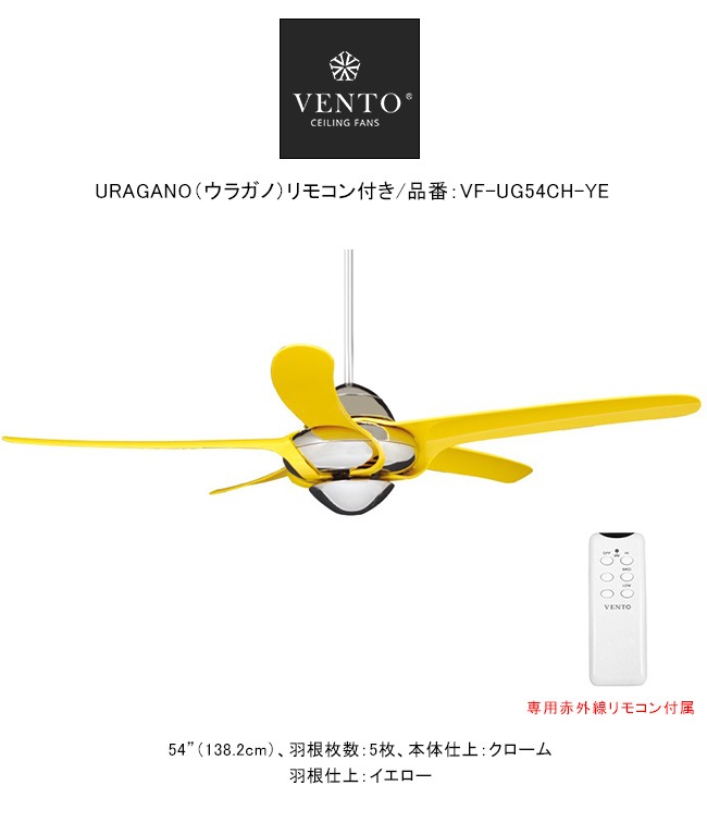 URAGANO(ウラガノ)リモコン付き/品番:VF-UG54CH-YE/仕上:クローム/イエロー【ヴェントファン VENTO】
