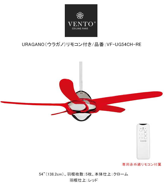 URAGANO(ウラガノ)リモコン付き/品番:VF-UG54CH-RE/仕上:クローム/レッド【ヴェントファン VENTO シーリ...