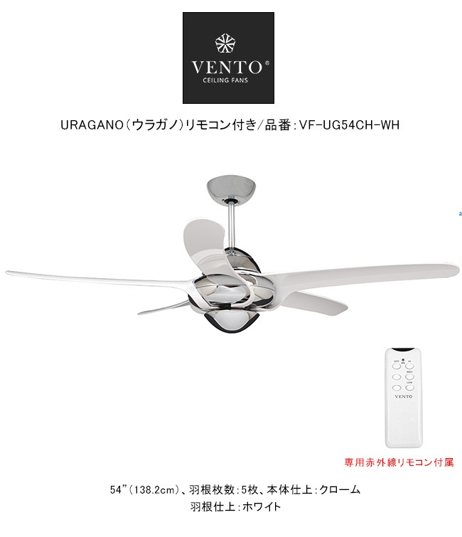 URAGANO(ウラガノ)リモコン付き/品番:VF-UG54CH-WH/仕上:クローム/ホワイト【ヴェントファン VENTO】