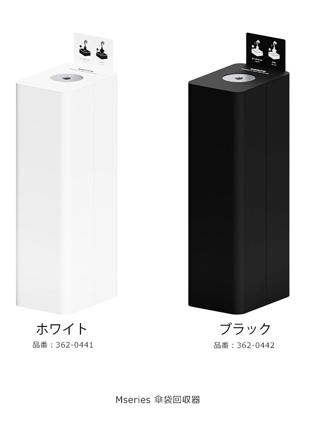 Mseries傘袋回収機/品番:362-0441(ホワイト)、362-0442(ブラック)Mシリーズ/規格:間口200mm×奥行2...