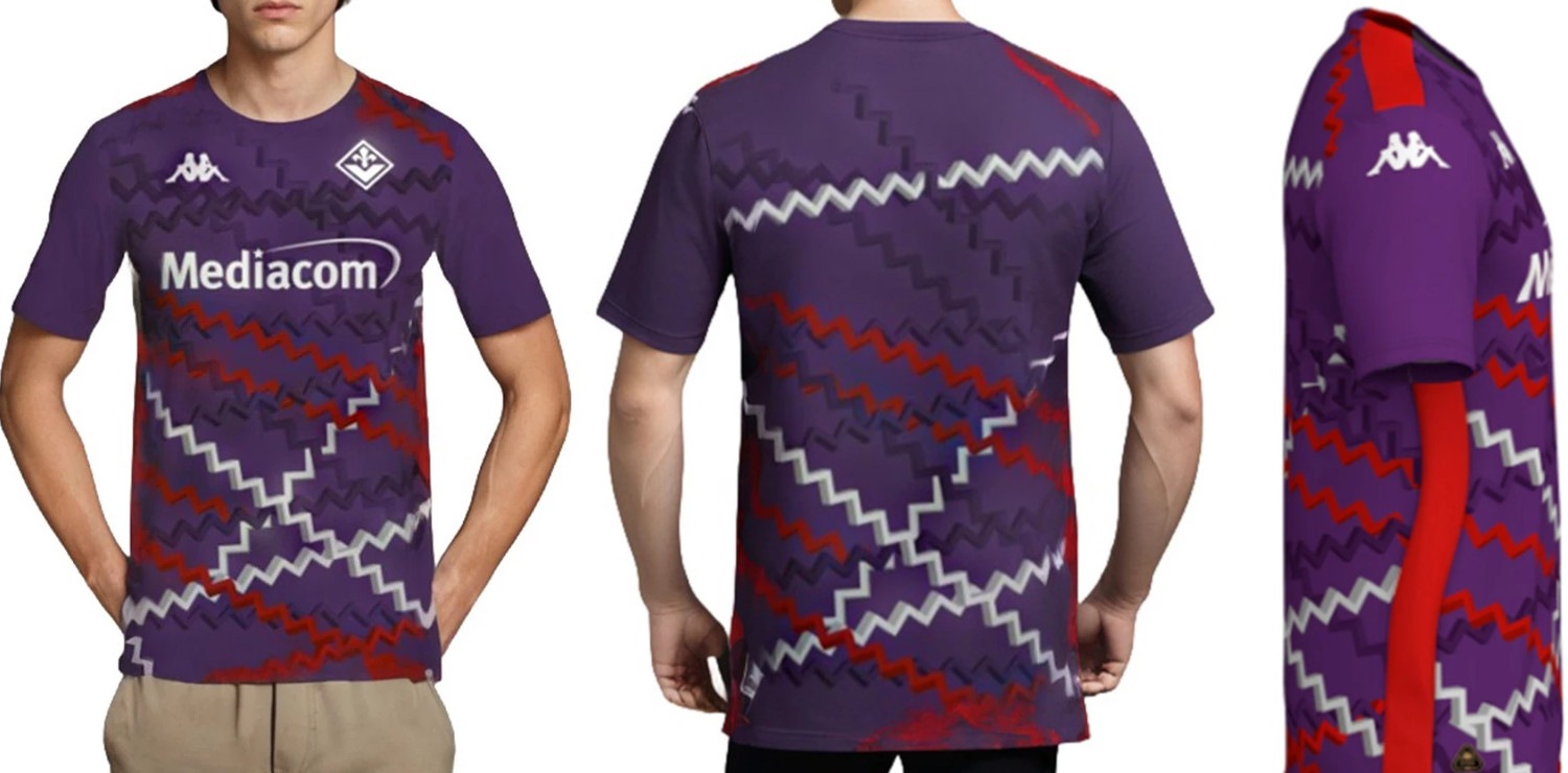 世界市場独占!24/25 フィオレンティーナ オフィシャル\"プレマッチ\"ウォームアップトレーニングシャツ:パープルカラー(スペ...