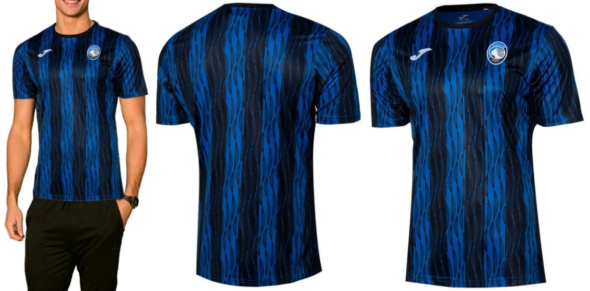 世界市場独占!24/25 アタランタ・オフィシャル\"プレマッチ\"ウォームアップトレーニングシャツ:ブルーカラー(スペインから送...