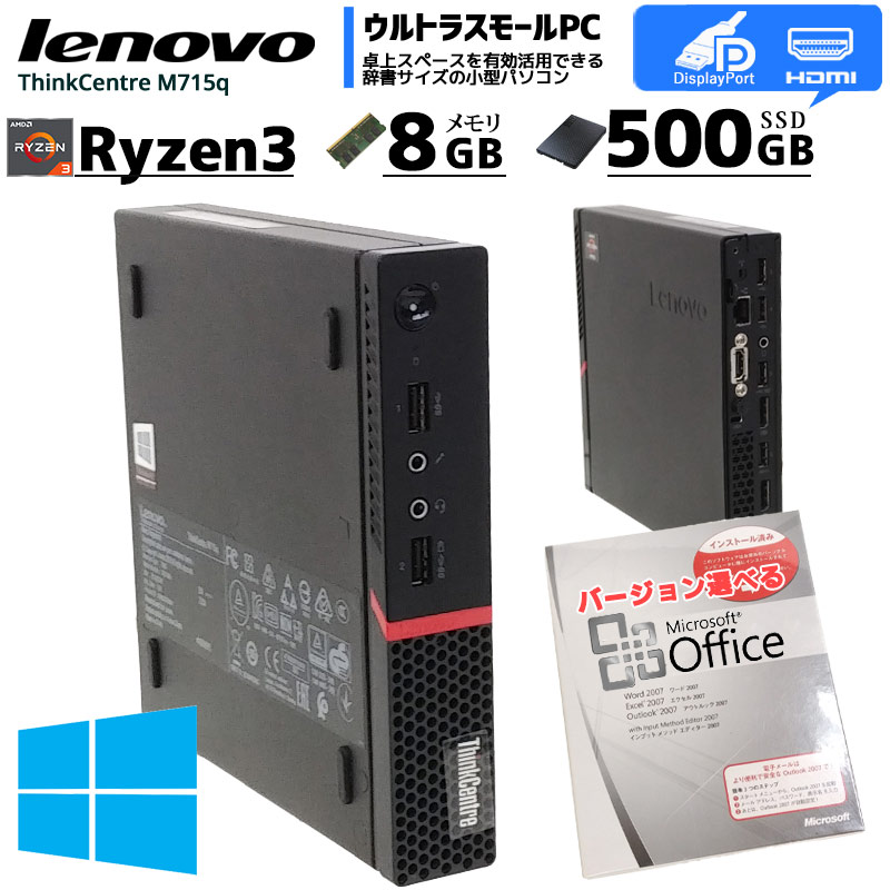 中古パソコン Microsoft Office搭載 Lenovo ThinkCentre M715q Tiny Windows10...