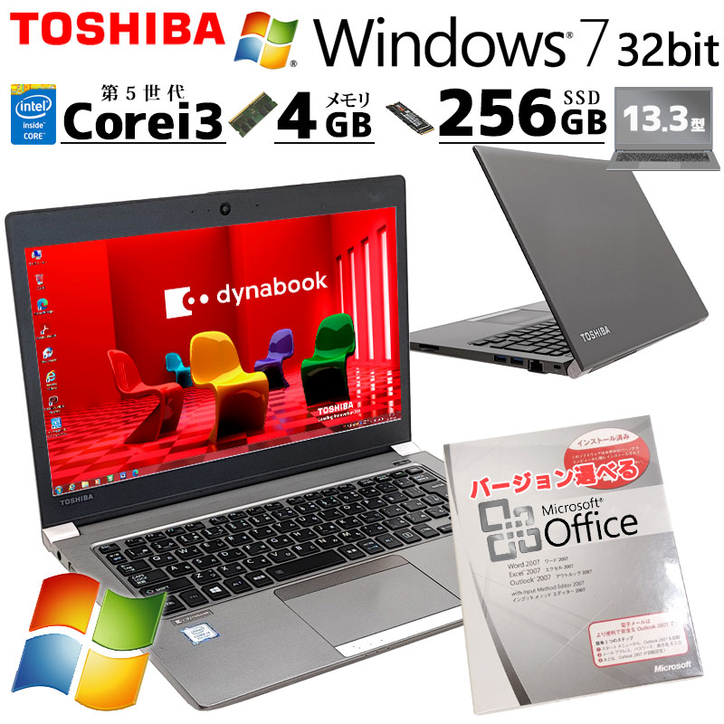 Win7 32bit 中古パソコン Microsoft Office付き 東芝/Dynabook dynabook R63/P W...