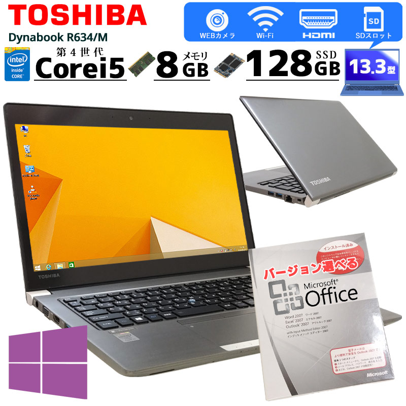 きれいな個体 中古ノートパソコン Microsoft Office搭載 東芝 Dynabook R634/M Windows8.1...
