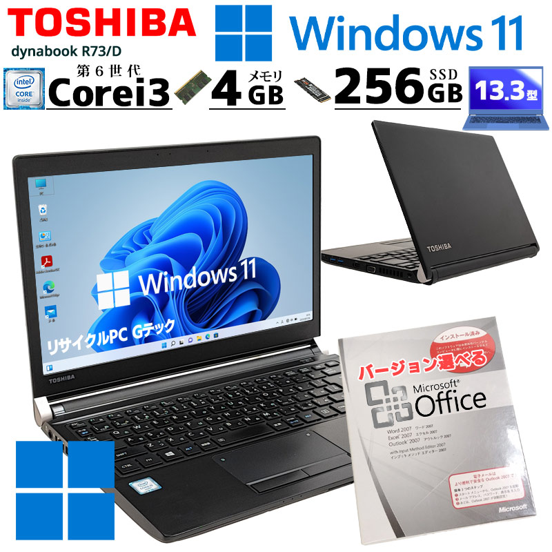 中古ノートパソコン Microsoft Office付き 東芝 dynabook R73/D Windows11 Core i3 ...