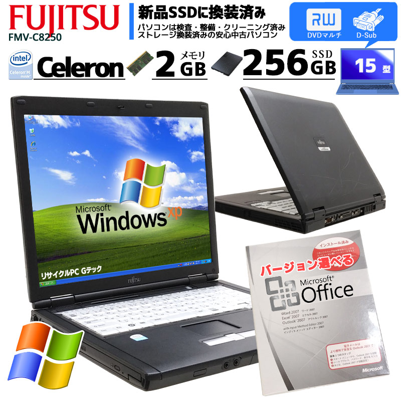 中古ノートパソコン Microsoft Office搭載 富士通 FMV-C8250 WindowsXP Celeron M530...