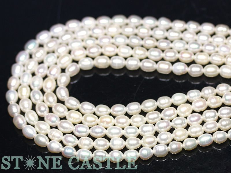 【カットビーズ】淡水パール (ホワイト) 米型 約7x8mm
