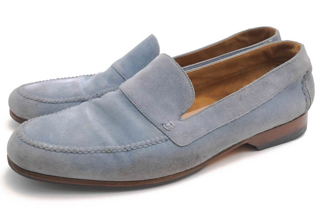 HERMES / エルメス 牛革 スリッポン ライトブルー 水色 コインローファー メンズ
